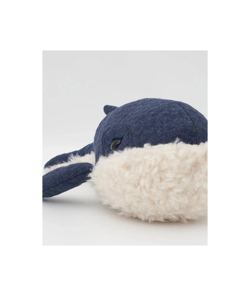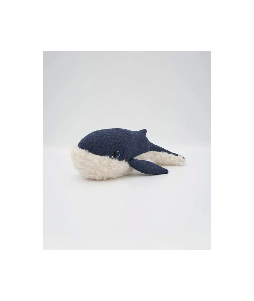 Peluche en forma de ballena con el lomo azul y el vientre gris. Suave y agradable al tacto, ideal como regalo o para decorar espacios con temática náutica. Una pieza perfecta para niños, amantes del mar o como complemento decorativo en habitaciones y salones. Largo: 38 cm.