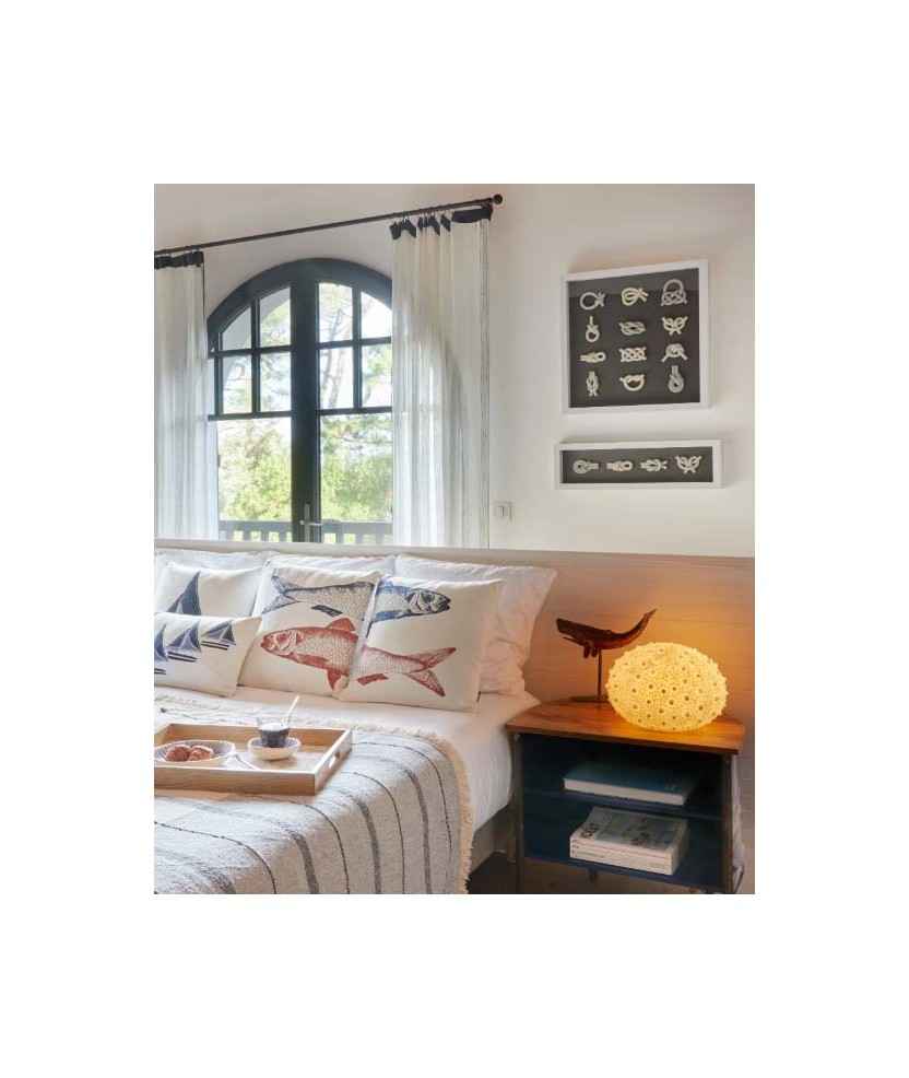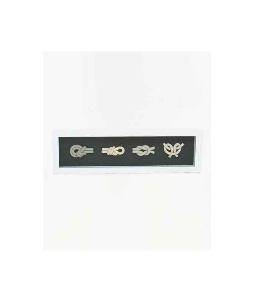 El cuadro de nudos marineros es una pieza que fusiona tradición y modernidad, capturando la esencia del mar en su forma más elegante. Con cada nudo, cuenta una historia de marineros y travesías, añadiendo un toque náutico y sofisticado a cualquier espacio. Un detalle que invita a soñar con horizontes lejanos. Medidas: 64x19 cm.