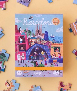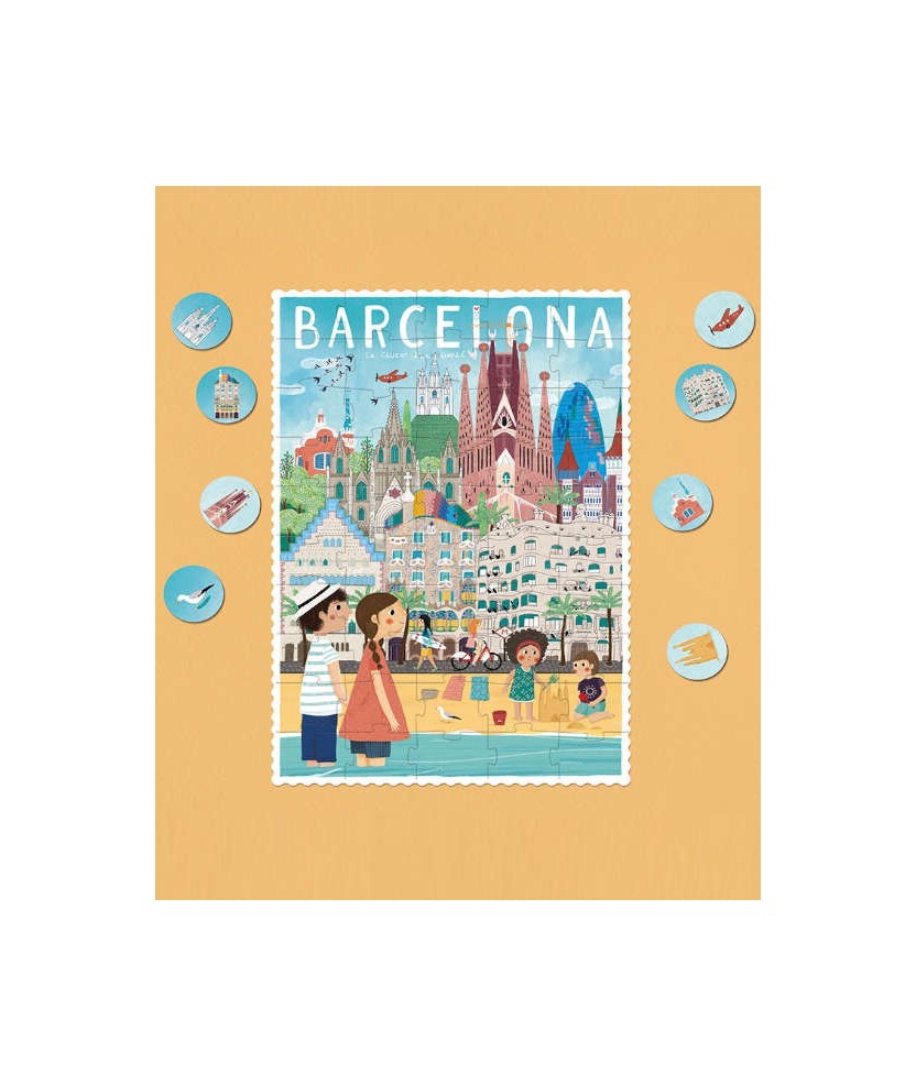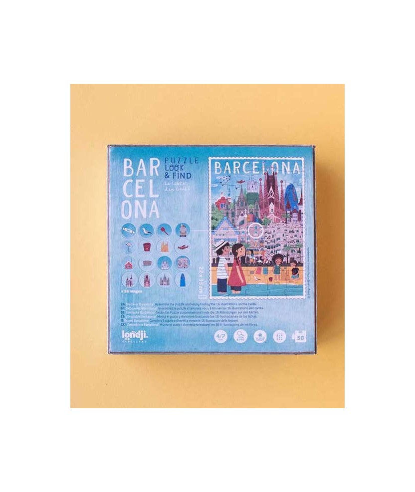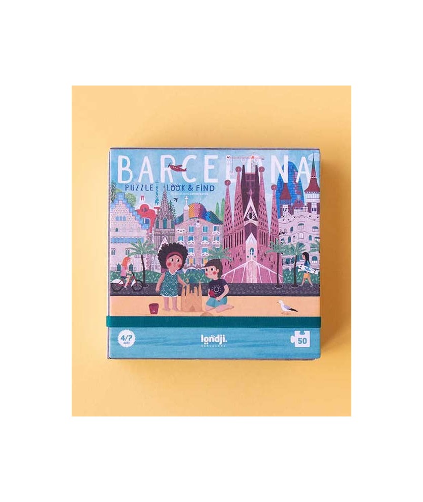 Barcelona es una ciudad llena de detalles en la que cada esquina esconde una sorpresa. Los edificios de Gaudí parecen sacados de un mundo mágico, llenos de colores y formas divertidas. Un puzzle de 50 piezas con juego de observación en versión de bolsillo, perfecto para llevar a todas partes. Un regalo bonito y original de Barcelona.