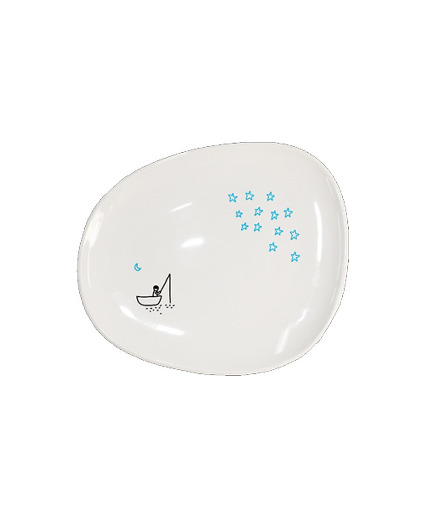 Plato de postre de porcelana de la colección Formentera, diseñado por Cecilia de Arriba. Su forma suave y orgánica refleja la calma mediterránea y el trabajo artesanal del diseño. Ideal para servir postres o acompañamientos con un toque de elegancia natural. Medidas: 23 x 20 cm.