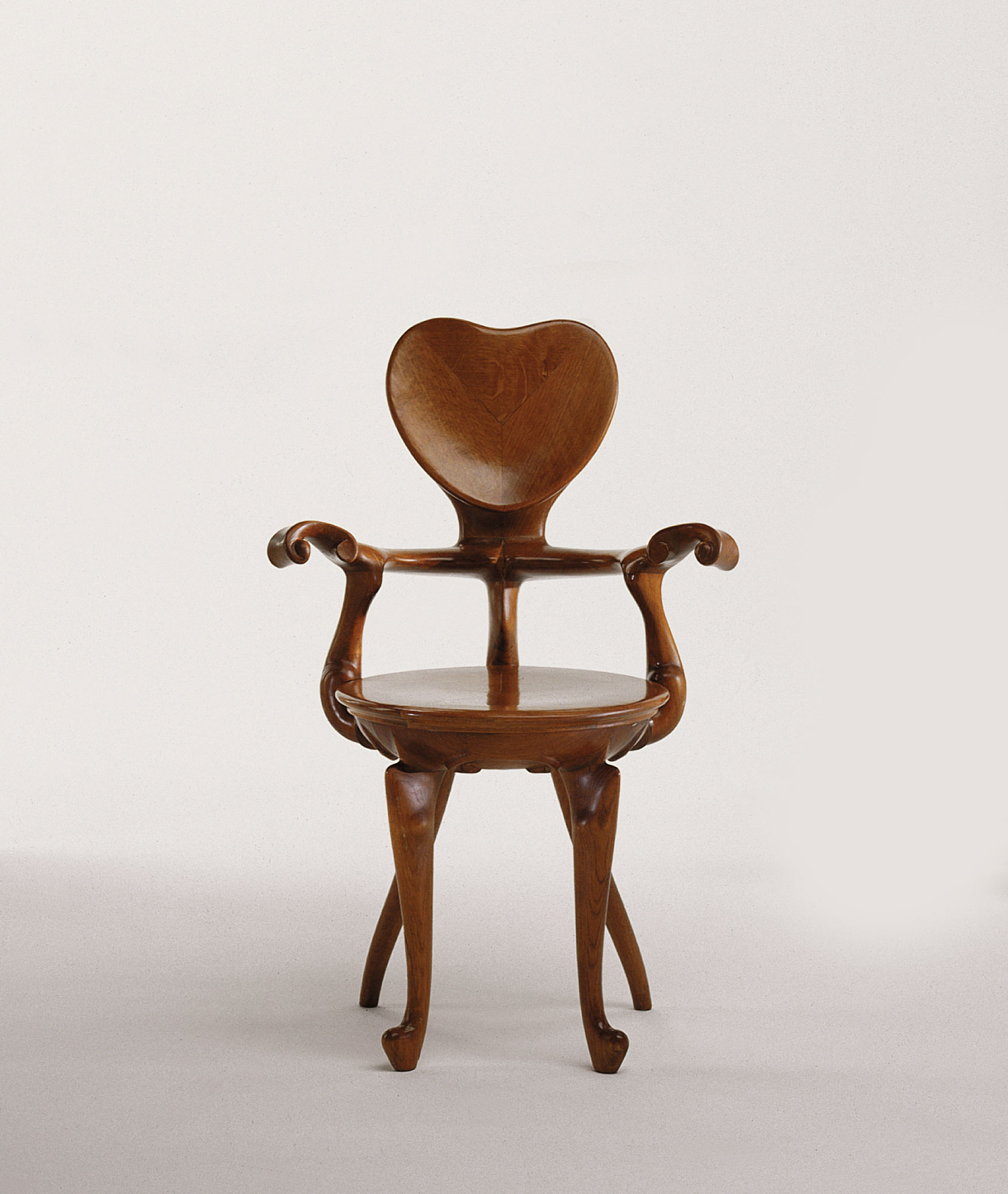 La concepció integral de l'arquitectura que posseïa Antoni Gaudí el va dur a ocupar-se, a més, dels càlculs estructurals de tots els elements decoratius que formarien part de l'edifici, mobiliari inclòs. Ara, Barcelona Design rescata de la historia aquests mobles per a reproduir-los en sèrie, de manera artesanal, amb els mateixos materials i tota riquesa de detalls amb què en el seu dia es van fabricar els originals. Material: roure massís vernissat. Mides: 52x65x95 cm.